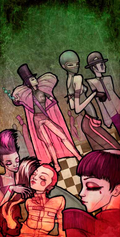 This was a commission for a friend who is very fashion conscious. I tried to include some unlikely fashion trends such as skunks, strait jackets and bubble pipes. Apparently bum bags were actually back in fashion for a while though, so obviously nothing is out of the question. |
